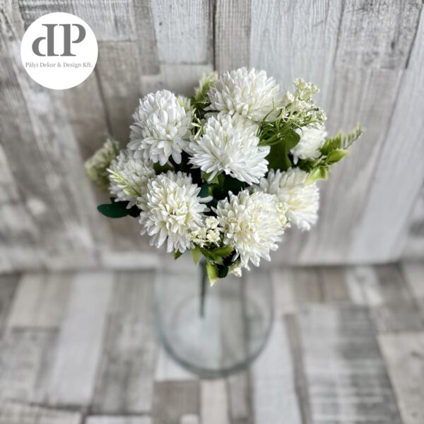 Krizantém csokrok, ÚjdonságokKicsi gömbfejű selyem krizantém csokor kiegészítővel 40 cm